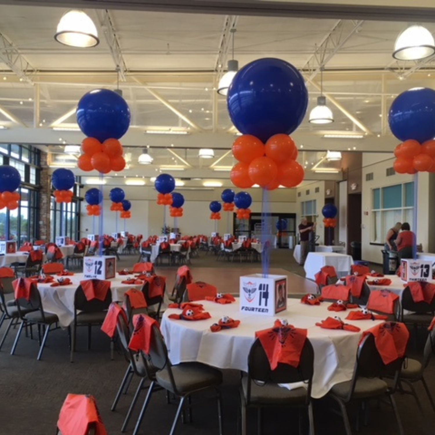 There are so many ways to use balloons in decorating and celebrating events. Helium is expensive but we do have some for local delivery only. Decorator 11" latex is a good option for many events. Three foot balloons fill a larger room better. Air filled designs add impact without helium and there are so many options to choose from. Pricing depends on the size and quantity of the helium inflated balloon. Call for a no obligation estimate, however, 11" latex balloons helium inflated started at 2.50 each.