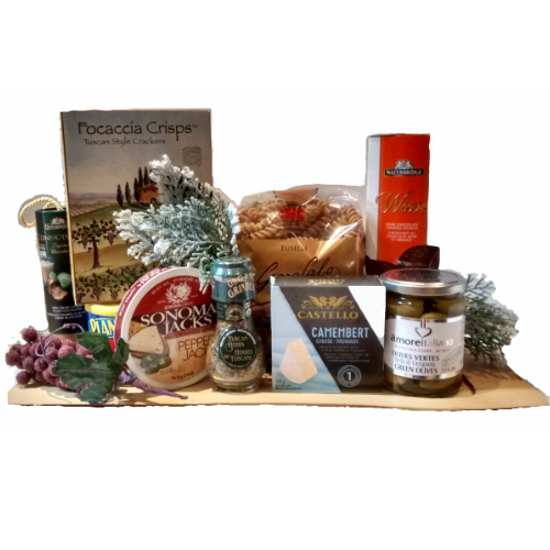 Arrange assorted cheeses, focaccia crisps, olives, chocolates, nuts and dried fruits on a live-edge wooden board and voila, in just a few minutes you'll have created a fabulous looking spread.