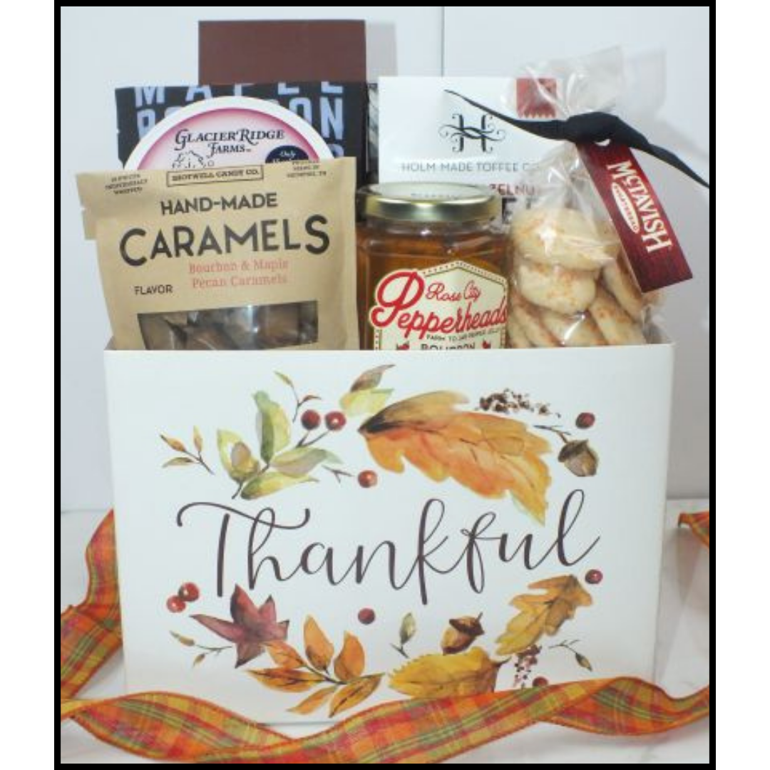 Designed in a fall theme container and hand made bow.