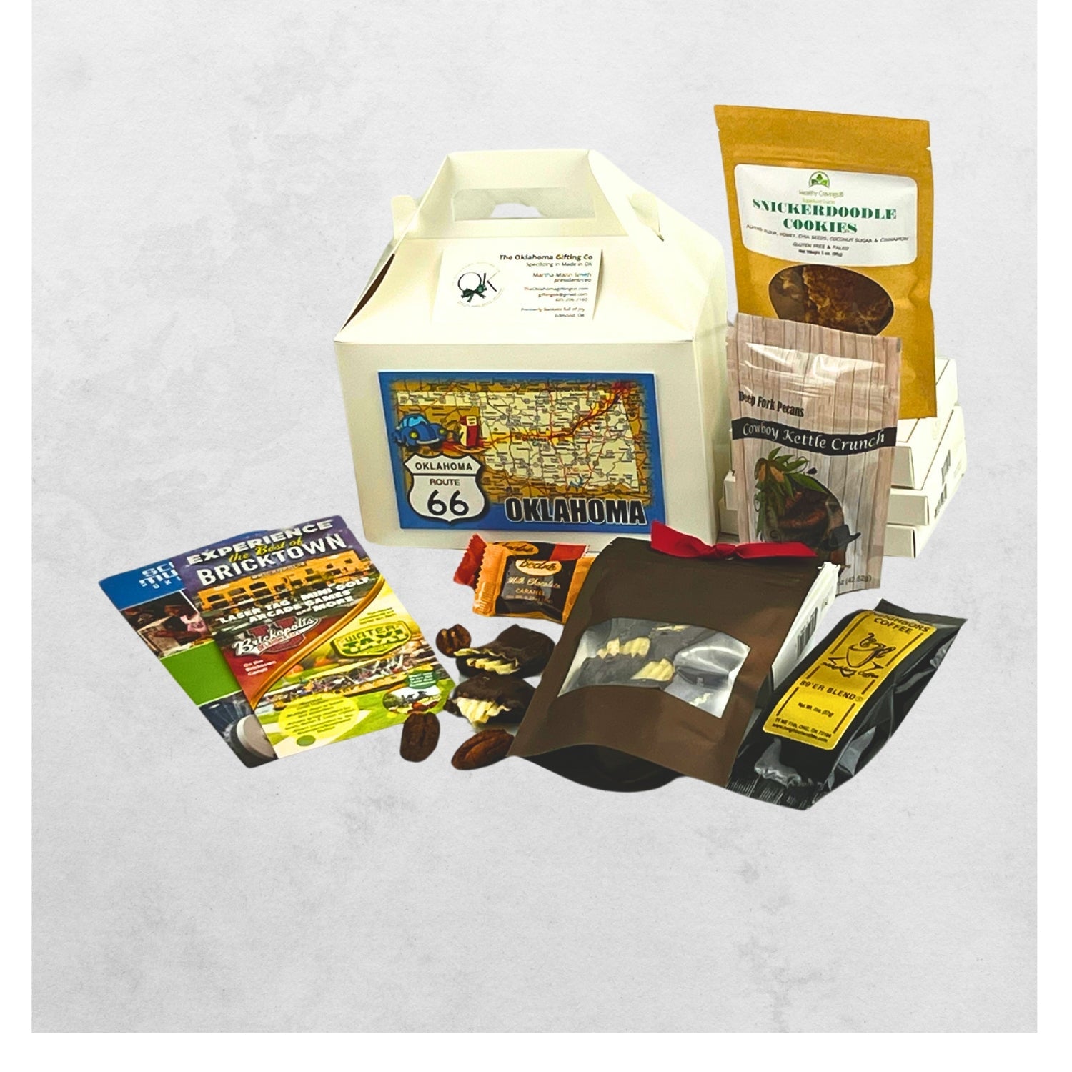 - Contained in easy to enjoy gable box with fun Oklahoma postcard and your event greeting card. All foods are TSA carryon approved...that is if anything is left!